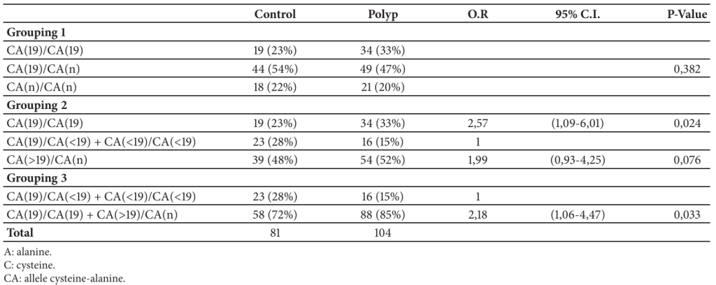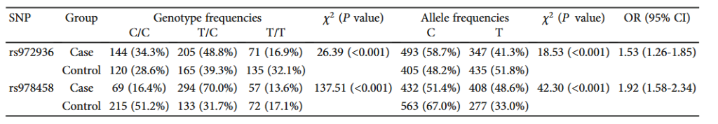 The genotype distributions of IGF1 polymorphisms in subjects