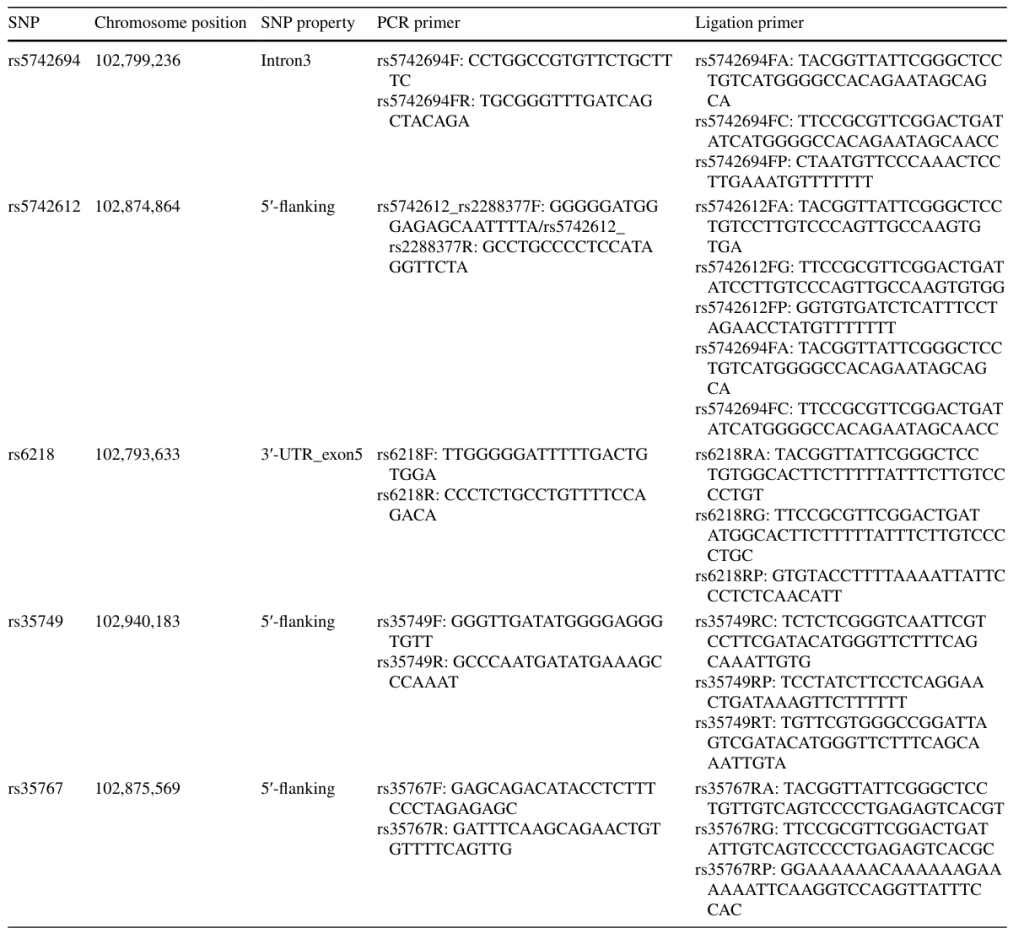 Primer information for IGF-1 gene genotyping
