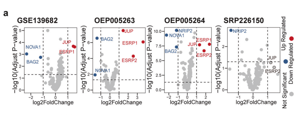 图5 四个独立GBC RNAseq数据库RNA剪接因子的差异表达分析