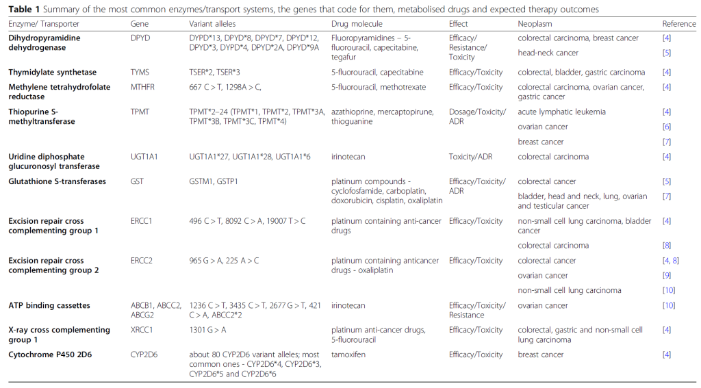 Nelly N. Miteva-Marcheva, et al. Application of pharmacogenetics in oncology. Biomarker Research (2020) 8:32