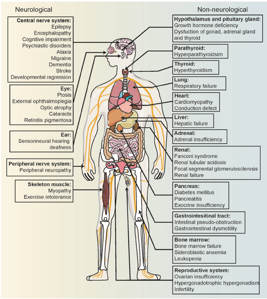 遗传与表型异质性极强,可累及全身(尤其脑、神经、眼、心脏、骨骼肌等高耗能组织),临床症状多样(发育迟缓、癫痫、肌病、视力障碍等),诊断与治疗难度大。
