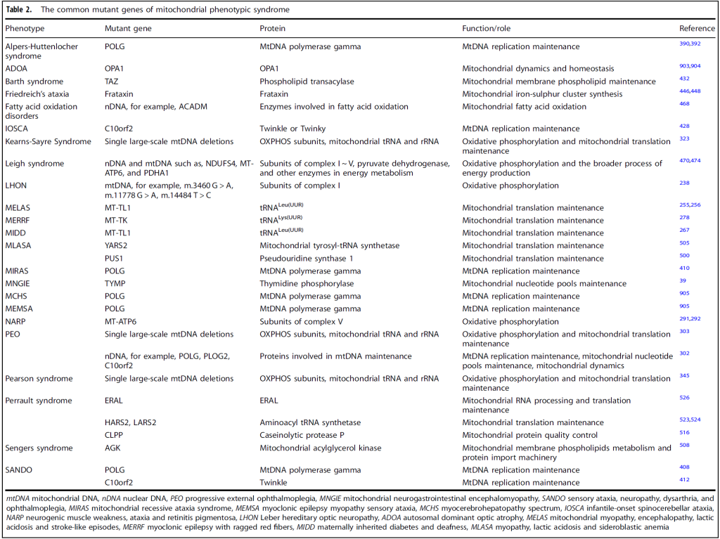 1.Haipeng Wen, et al. Mitochondrial diseases: from molecular mechanisms to therapeutic advances. Signal Transduction and Targeted Therapy (2025) 10:9; https://doi.org/10.1038/s41392-024-02044-3