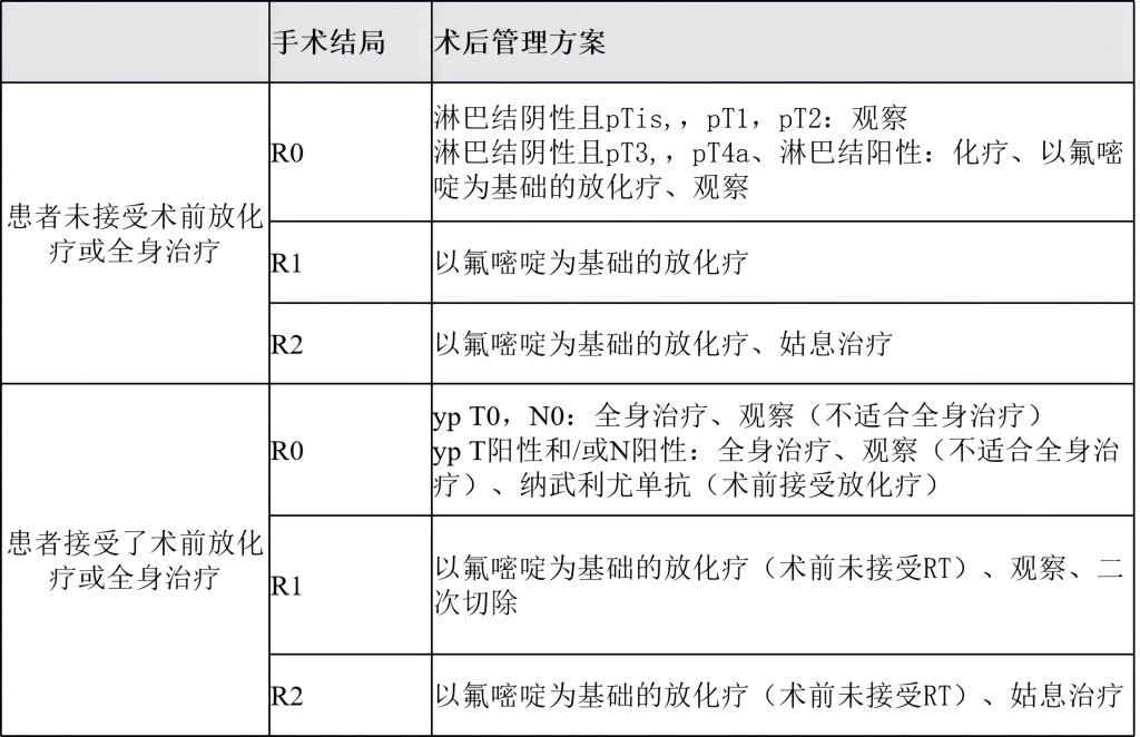 鳞状细胞癌患者进行食管切除术后患者后续管理方案: