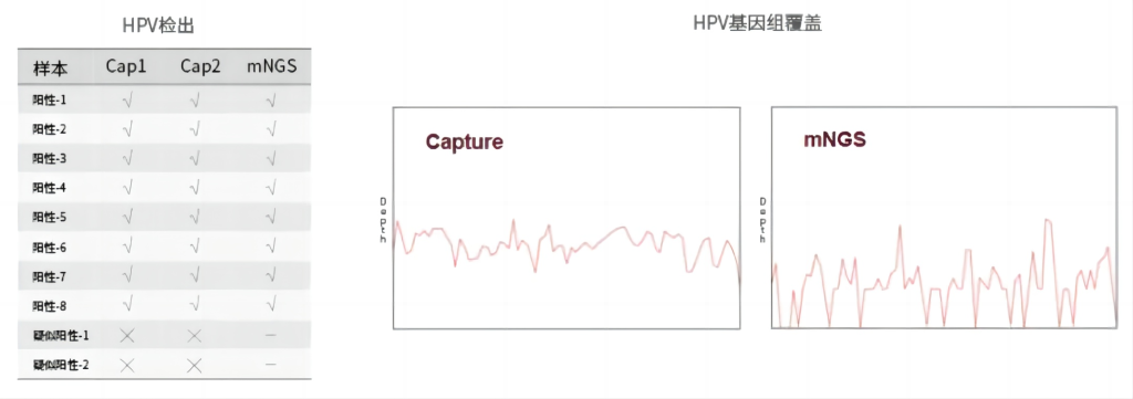 伯科生物设计合成的病原Panel延续了人类基因组Panel的性能优势,其富集效率高、均一性好。用户的测评结果显示,使用不同的捕获方式,对不同HPV亚型的阳性样本进行捕获测序,与mNGS相比,伯科HPVPanel的富集效率在4000倍/20000倍左右,HPV基因组覆盖均一性优异,同时,HPV亚型检测一致性好。