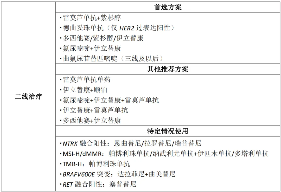 不可切除的局部晚期、复发或转移性疾病的全身治疗方案