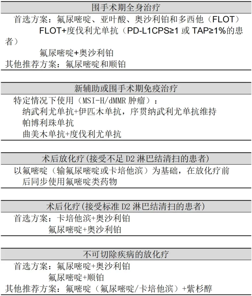 pT3、pT4、任意N或任意pT、N+:氟尿嘧啶类为基础的放化疗(若D2淋巴结清扫不足),或D2术后单纯化疗