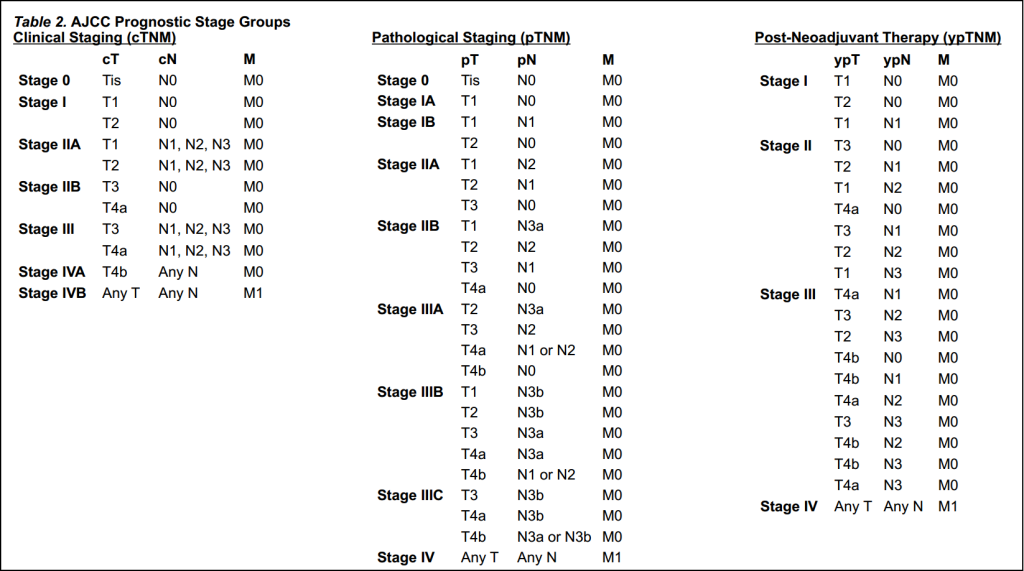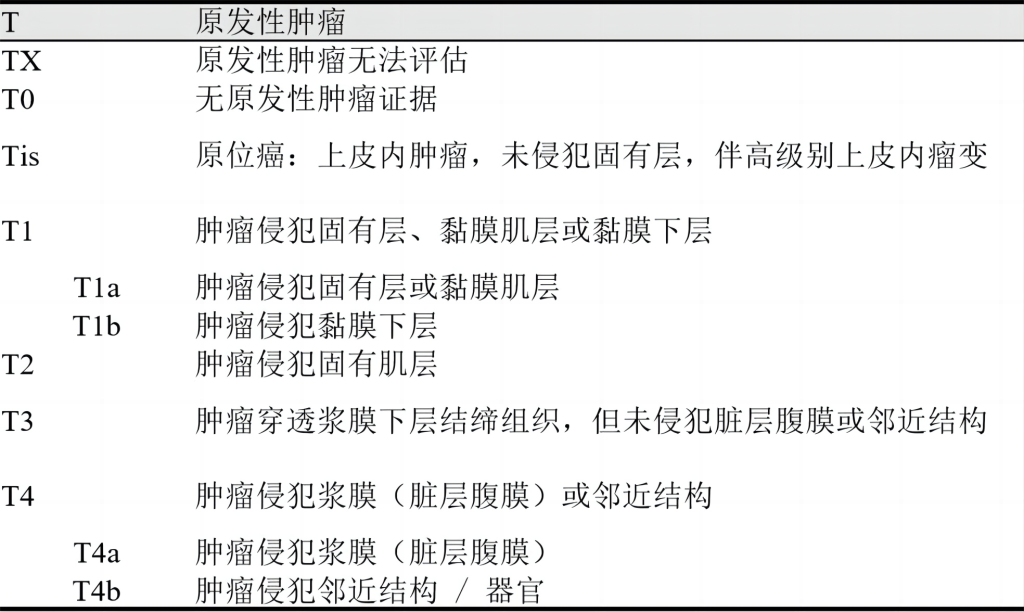 NCCN指南采用美国癌症联合委员会(AJCC)胃癌TNM分期分类: