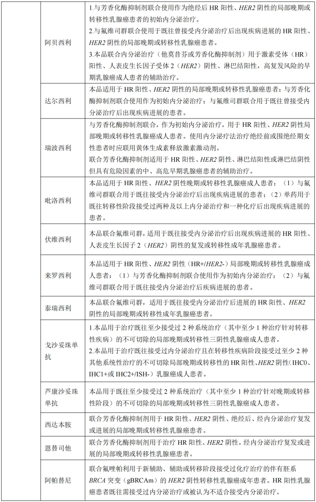 三、乳腺癌常用治疗药物