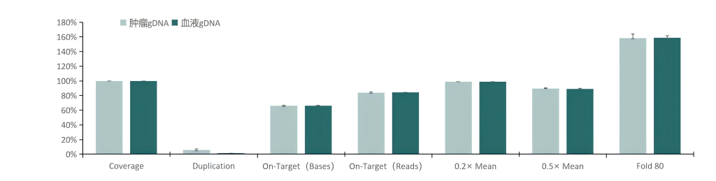 对不同质量的gDNA样本 (WBC/FFPE, >150例),TargetCap® OncoGene Plus Research Panel表现稳定。