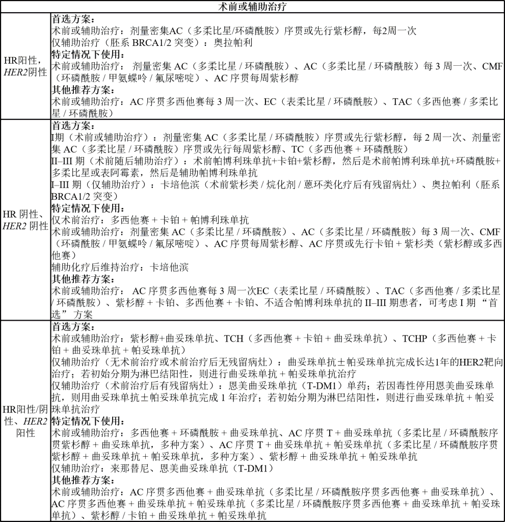 新辅助治疗:术前进行化疗±靶向治疗±内分泌治疗,目的是缩小肿瘤、降低分期。